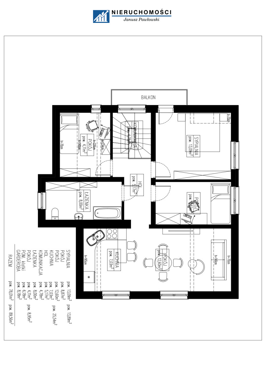 MIESZKANIE 2 - PIĘTRO (78,01 m² użytkowe / 89,56 m² po podłodze)
